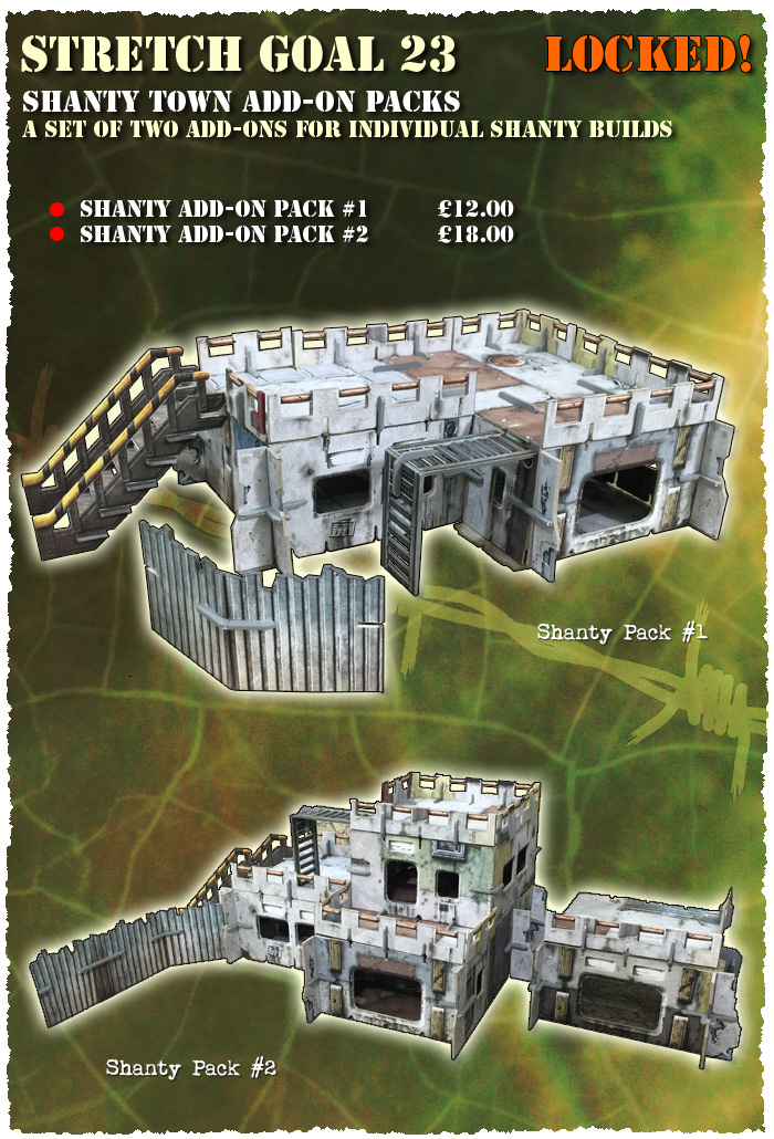 We’re just about the unlock the Shanty Town add-ons, two smaller building packs for those that want to experiment but don’t want to go full-on Shanty!