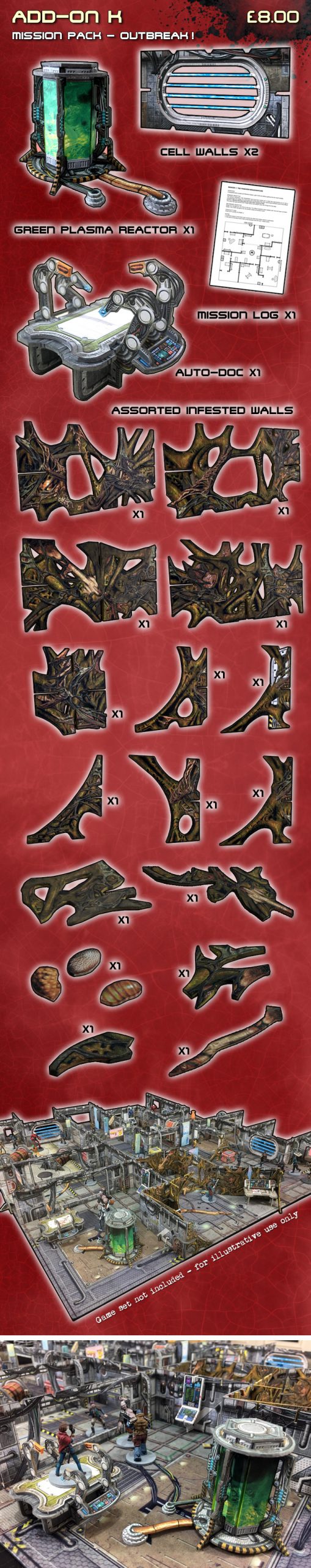 We’ve got just over 24 days to pump out as many free stretch goals and cool add-ons as we can. First add-on up is the OUTBREAK! mission pack. A self contained mission that can be played as a one-off or as part of a campaign that comes with it’s own terrain.