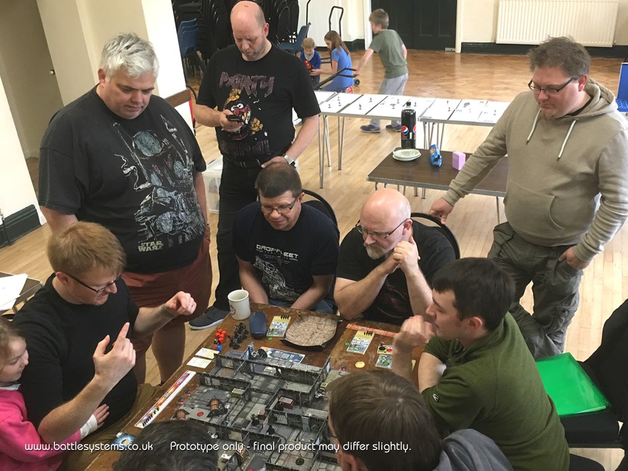 In a sleepy village hall in deepest Worcestershire we had our second ever Battle Systems Game Day. We invited some of our previous backers to beta test our prototype sci-fi game and a fun time was had by all.
