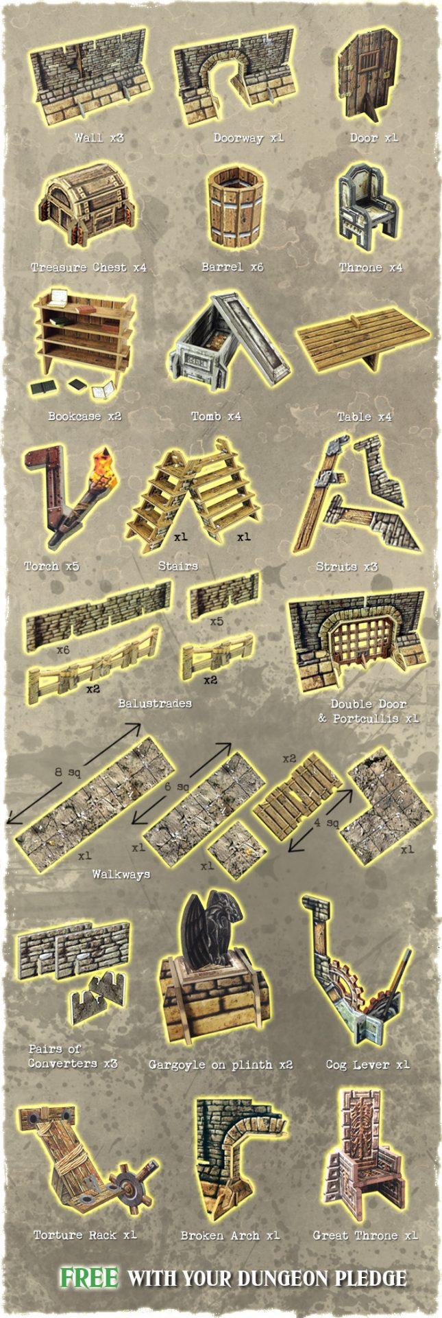 Other major add-ons include the Mines of Minerva, the Dimension Gate, the Great Hall, the Dungeon Sewers and two sets of Dungeon Accessories.