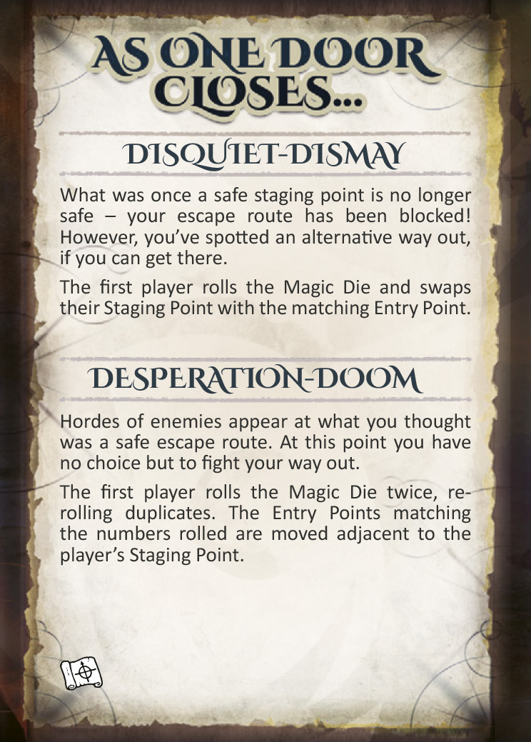 Environment Cards change conditions for your party and will be relevant in almost all games of Maladum. This can be for good or ill – sometime a tremor will throw your party to the ground and at other times a surge of magical energy could empower them.