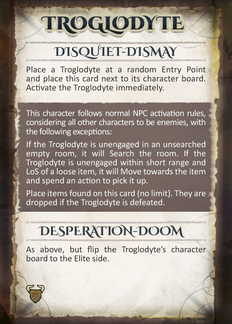 These card modify the behaviour of Revenants, bringing in reinforcements or give them access to special abilities. This can really change your plans or introduce a whole new element to think about. Nothing ruins your day quicker that a furious Rot Troll turning up beneath your feet!