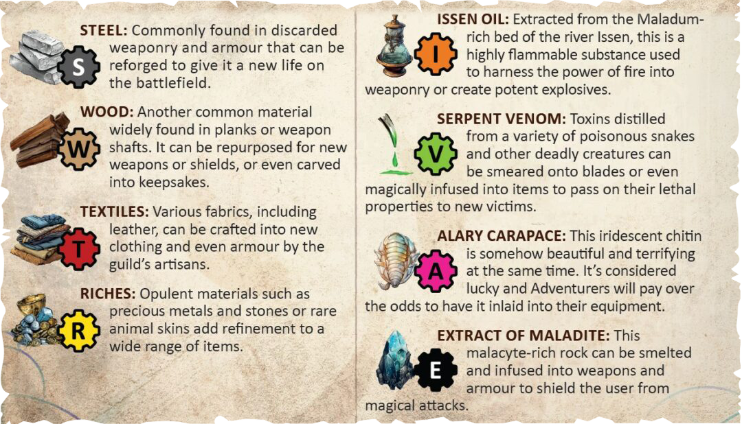 The book includes sections on crafting, side quests and character creation introduced through Of Ale and Adventure, Companions from Forbidden Creed, and the extra terrain featured in the Beyond the Vaults expansion.