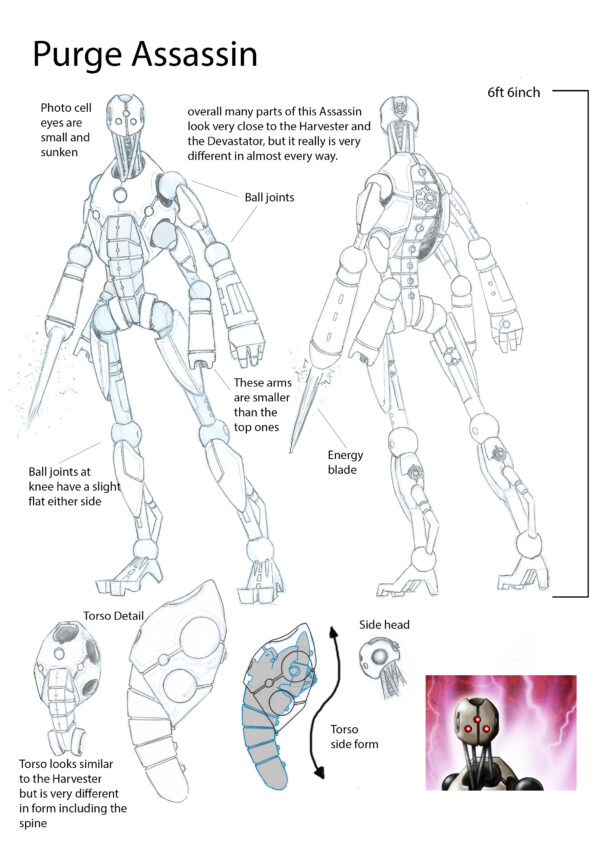 The Purge are in constant evolution, new models are created and old ones abandoned. The current models are well known to unlucky space-farers, the Harvesters, Devastators, Assassins, and Live Ones, and more recently, the Annihilators and ‘Mothers’. There are other models that have been rarely encountered and work in the background, and yet others in development.