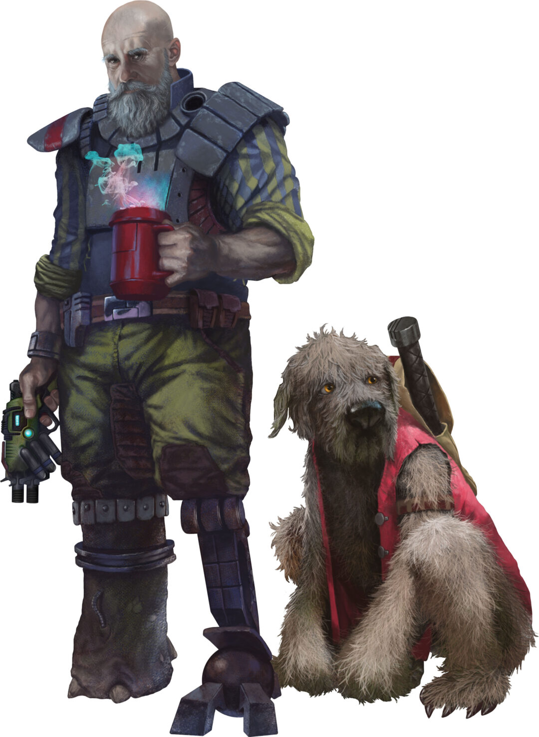 Doric is that rare type of Trader – a retired one. After losing both legs in a particularly gruesome encounter with the Purge and having to perform self-surgery using what was at hand – a Quell leg and a Purge Devastator leg! – he became a self-styled ‘business man’ and has opened up trading posts in various guises over the years. He is sole proprietor of Trading Post 5 and is like an avuncular rattlesnake, one moment regaling his customers with tall tales, the next dispatching miscreants with the toe of his mismatched foot. Rather than replace the legs with more suitable cybernetics he has maintained them, using a blood filter to keep the Quell leg alive and wiring the Devastator leg into his own nervous system.