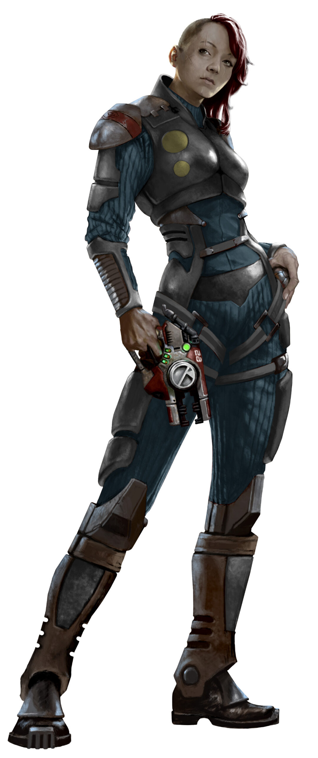Special Agent Zara has been commissioned by the Galactic Corps to be their eyes and ears on developments in the First Born system. She has posted herself at Trading Post 5, and spends her days pretending to drink at the bar but observes all. The local riff raff avoid her although they are aware she has no interest in their petty criminal activities. Doric tolerates her presence as it never hurts to have a well armed militia on hand.