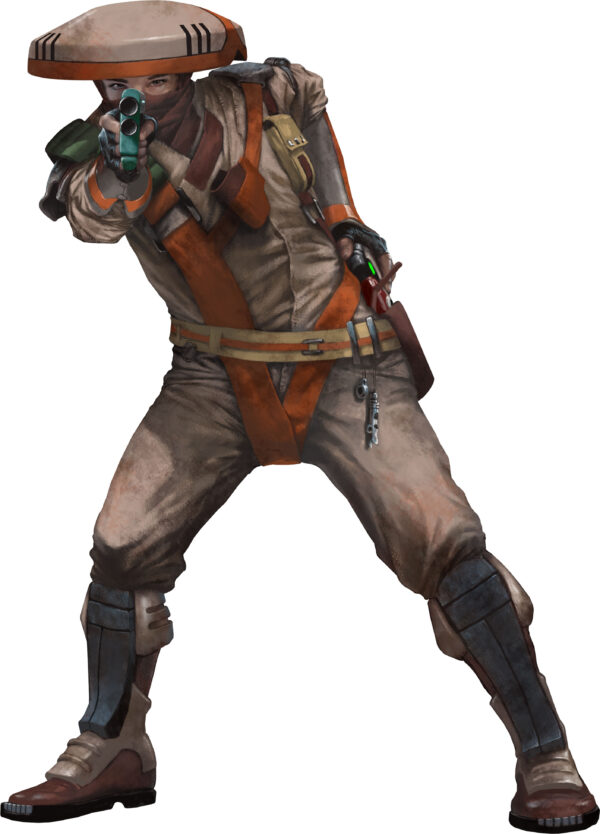 Lohbac is a captain without a ship or crew after a recent encounter with the Purge. He is from an inhospitable world that has huge oceans and rocky islands and although he has gills he can’t actually breathe underwater, the gills are just evolutionary remnants. He can breathe the standard air in Human habitats but wears a re-breather that gives him a regular whiff of nitrogen. He also has to regularly rub unguents onto his skin to stop it from drying out. He is stronger than the average Human and enjoys the occasional bar fight.