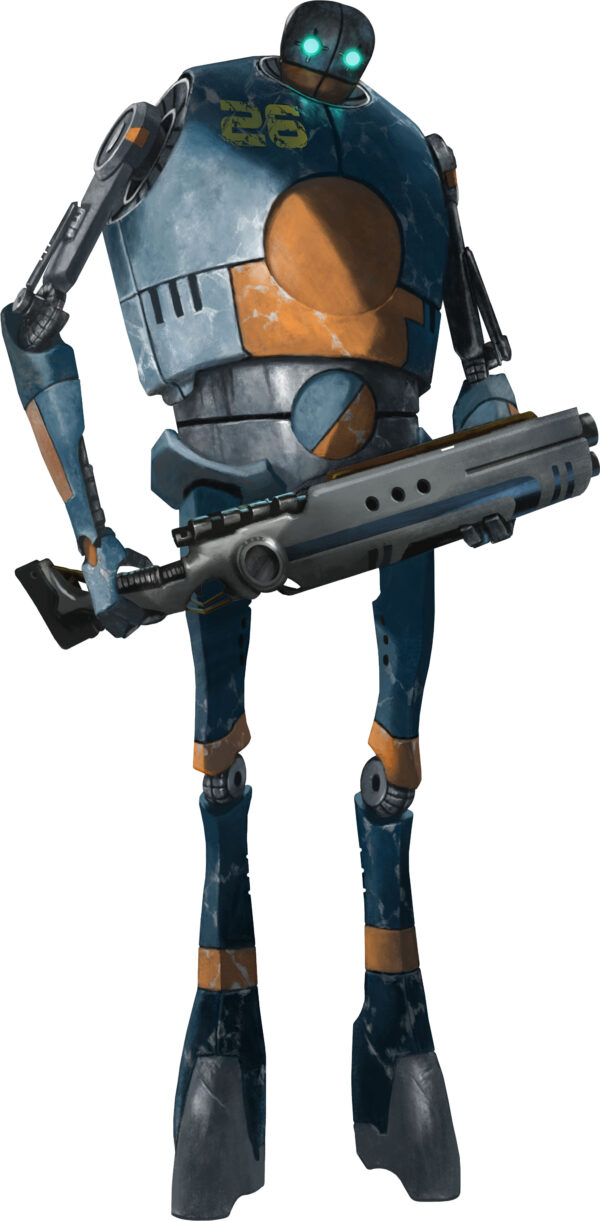 XLM-26, known only as XL, has been a Trader machine for a number of years. Although it seems to be sentient it has never expressed an interest in its own freedom. However, like many machines it has expressed a distaste for shooting at living creatures. Despite this it will follow orders without question. It has a collection of small kawaii animal dolls that it keeps in a cupboard. No one knows why.
