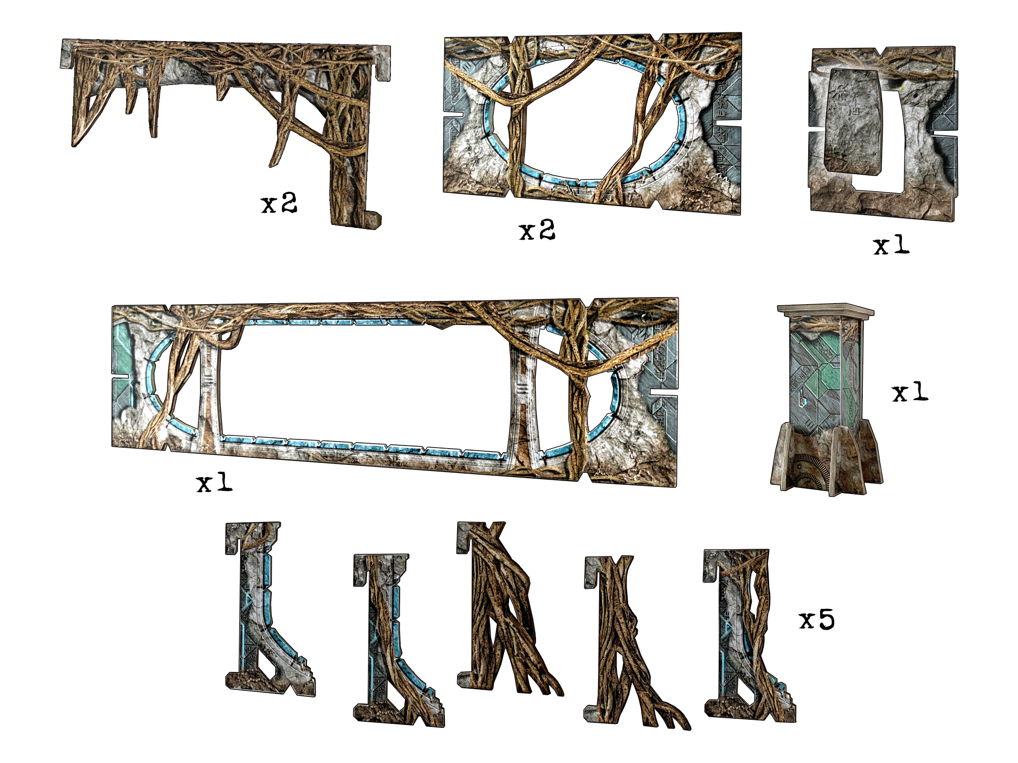 This pack contains additional entrances and accessories from the Alien Catacombs Set/Core Space First Born Starter Set for building larger gaming areas.