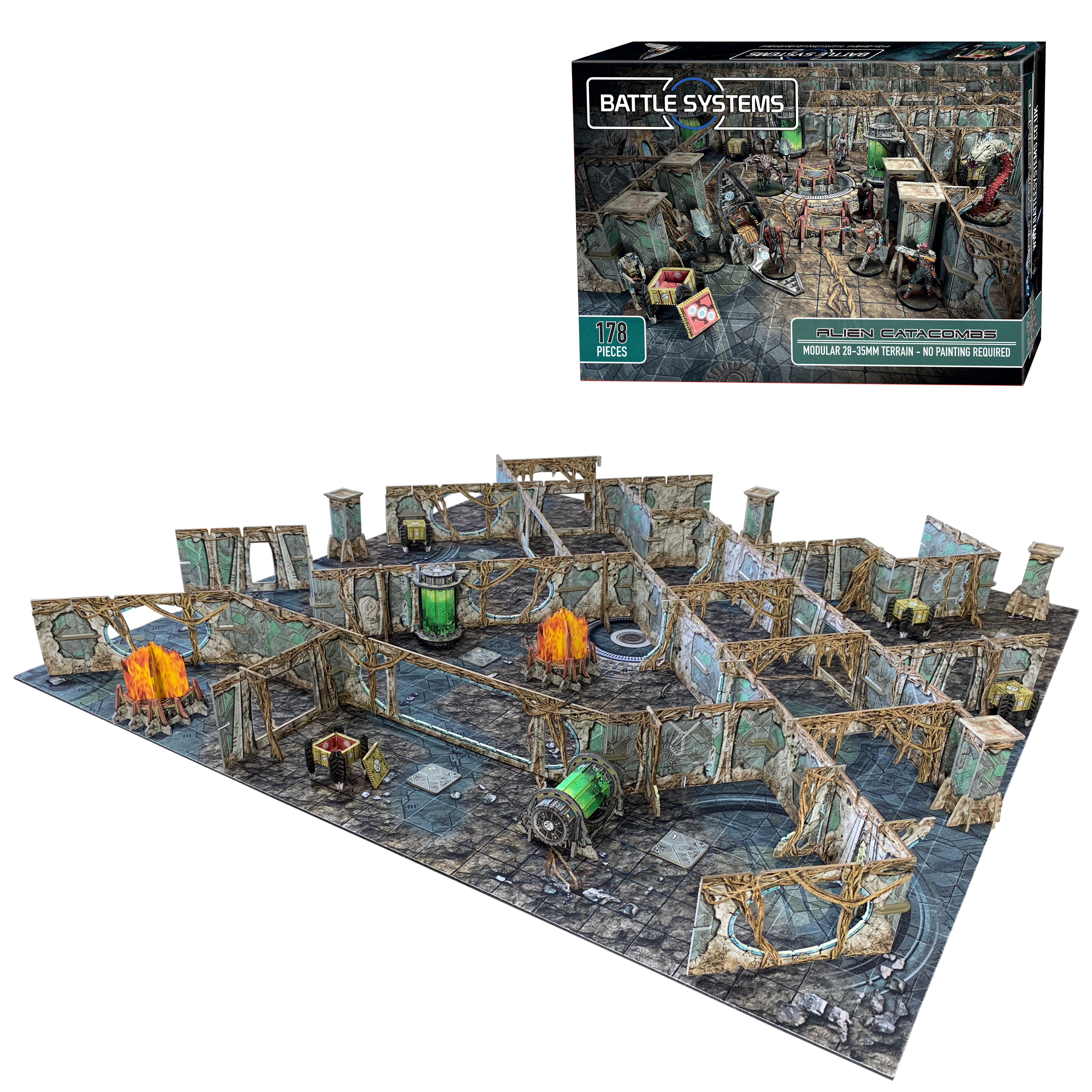 The terrain is supplied flat-packed on high-quality, high-density card, printed in full colour on both sides, so no painting required! The terrain requires assembly, and some smaller parts will require glue. Please see www.battlesystems.strafe.dev for more details and full instructions.
