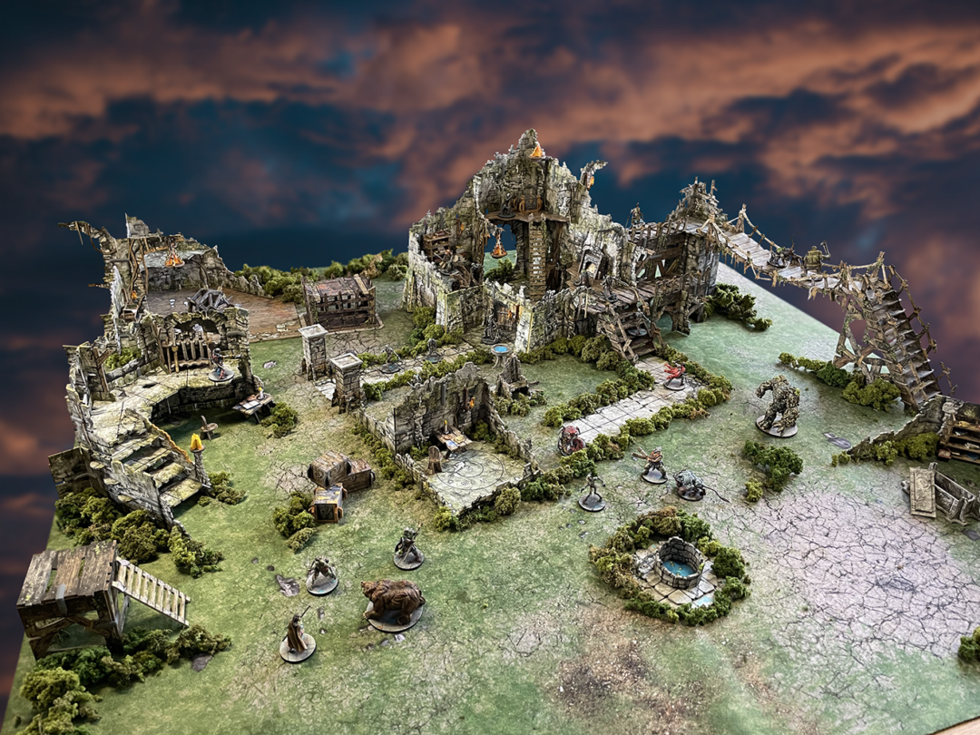 The terrain is supplied flat-packed on high-quality, high-density card, printed in full colour on both sides, so no painting required! The terrain requires assembly, and some smaller parts will require glue. Please see our Tutorials page for more details and full instructions.