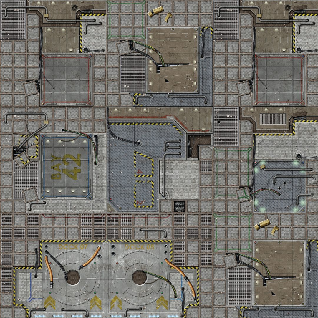 This pack contains a 2′ x 2′ / 60cm x 60cm gaming mat depicting the streets and corridors of a decrepit futuristic city or space station. It has a 1″/25mm grid.