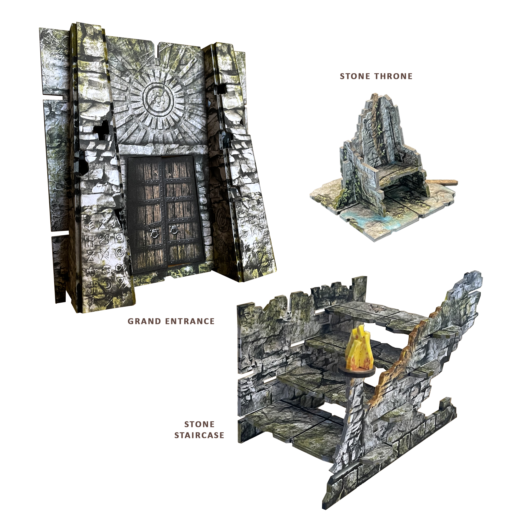 This pack contains an additional entrance and accessories from the Fantasy Dungeon terrain set for building larger gaming areas.
