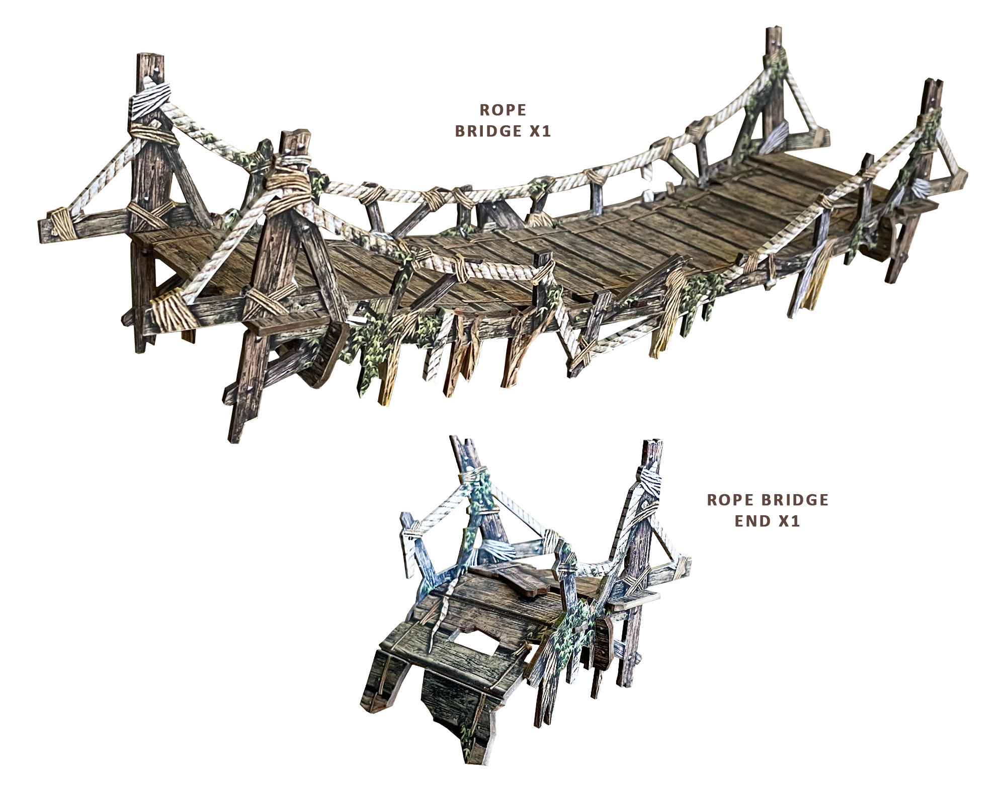 This pack contains parts to build an additional rope bridge from the Fantasy Dungeon terrain set when building larger gaming areas.