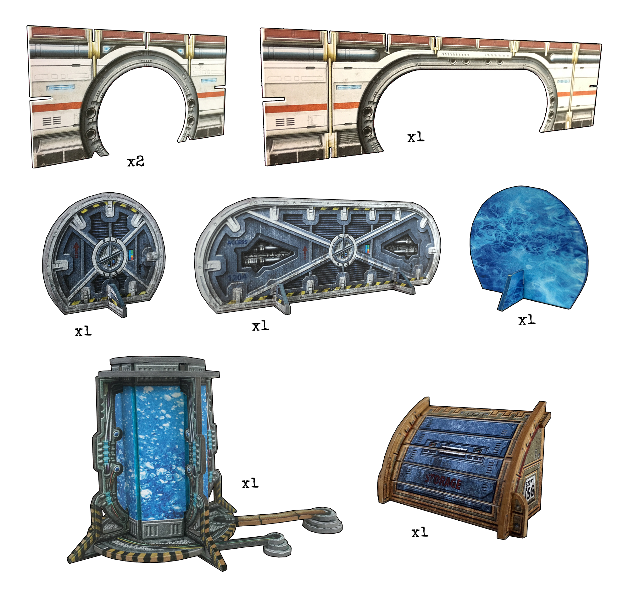 This pack contains additional doorways and accessories from the Galactic Core Set for building larger gaming areas.